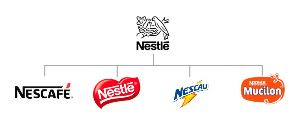 A Nestlé usa esse modelo há décadas. KitKat, Nescafé e Maggi são marcas independentes que carregam o endosso Nestlé como garantia de padrão. O consumidor escolhe pelo nome da marca filha; o endosso remove barreiras de confiança.
