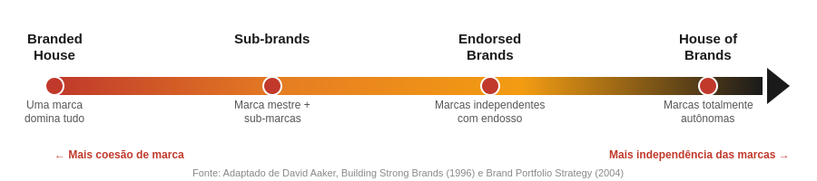 Fonte: Adaptado de David Aaker, Building Strong Brands (1996) e Brand Portfolio Strategy (2004)
