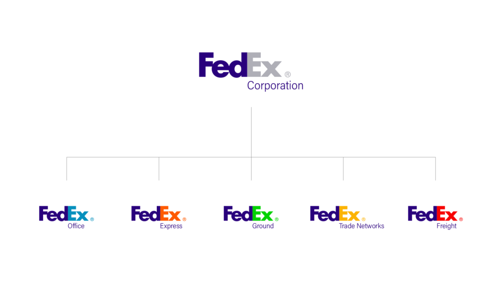 A Apple é o caso mais estudado. iPhone, MacBook, iPad, Apple Watch, Apple TV. Cada produto reforça e é reforçado pela marca Apple. O consumidor compra a marca antes de comprar o produto. O FedEx segue a mesma lógica: FedEx Express, FedEx Ground, FedEx Freight.