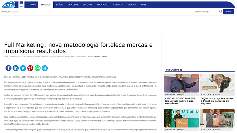 Para mudar essa realidade, o especialista propõe uma abordagem oposta. Para ele, é necessário enxergar o marketing como um sistema completo e interdependente, no qual cada ação se conecta a um propósito estratégico maior. Nesse sentido, Lebbe detalha a metodologia Full Marketing, estruturada em torno de frameworks práticos como a Mandala Lebbe e o modelo Lebbe Growth.